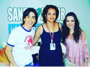 Esta jornalista com a dupla Sandy e Junior em 2004, em Montes Claros.