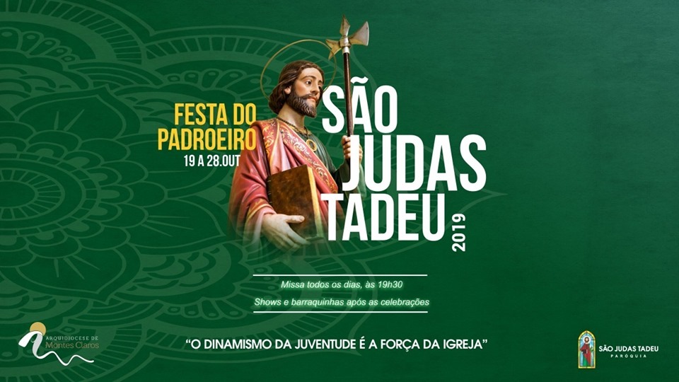A terceira edição da Festa da paróquia São Judas Tadeu, localizada no bairro São Judas em Montes Claros, terá encerramento hoje(28), quando é comemorado o dia do seu padroeiro com o tema: “O Dinamismo da Juventude é a força da Igreja”. O arcebispo de Montes Claros, dom João Justino confirmou que fará a caminhada devocional junto aos padres Brígido Lima e Fernando Soares, às 18h30, e ao fim da procissão, a missa campal e encerramento da festa com confraternização e barraquinhas.